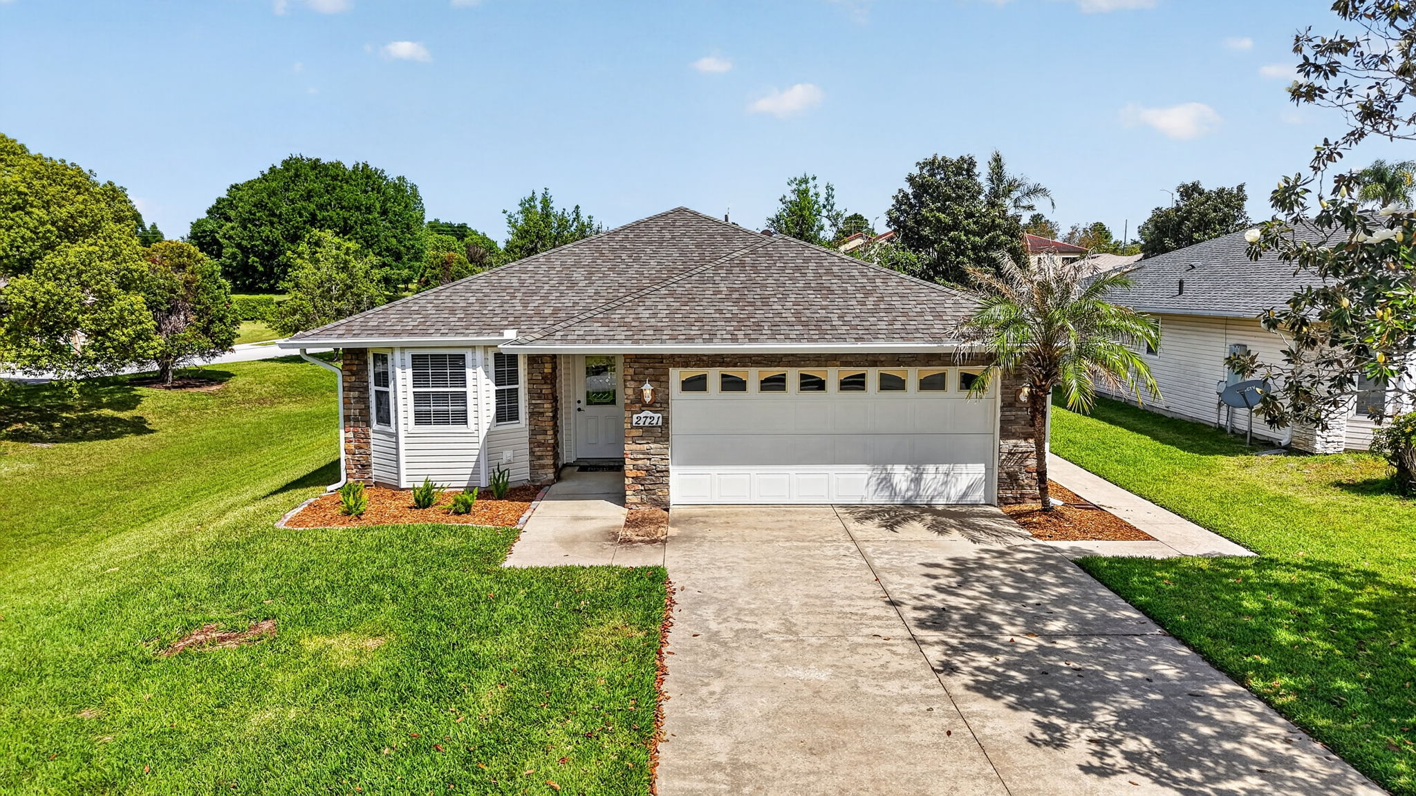 Welcome home to Lake Saunders Point, a sought-after lakeside community welcoming all ages and offering amazing amenities, including a boat launch, covered 8-slip marina, clubhouse, swimming pool, community lawn care, and the opportunity to forge lasting friendships in this neighborly community. Imagine your family living their best Florida lakeside lives here! The vibe is tranquil and relaxed with natural beauty all around. Lake Saunders is a 336-acre private access lake, ensuring it won’t be overcrowded with people, and it most definitely will allow you and your family abundant opportunities for boating, skiing, fishing, kayaking, and more! Did I mention the amazing sunsets? After a sun-drenched day of fun on the water, arrive home to your personal slice of paradise. This stylishly updated, lovingly maintained home provides move-in-ready peace of mind. Recent installations: new water heater in 2026, new roof and A/C unit in 2022. The curb appeal is warm and inviting, with a lush lawn framing the home and its attractive stacked-stone façade. Park in the expansive driveway or 2-car attached garage. Take the paved walkway to the conveniently covered front entry and step inside to find a comfortable yet sophisticated interior with gorgeous wood floors throughout. The white trim and pleasing neutral wall colors create a perfect backdrop for you to move right in. Enjoy hosting dinner parties in the front dining room with a bay window and easy kitchen access, where crisp white cabinetry and storage drawers are finished with a beautiful granite countertop. White appliances blend in seamlessly. Enjoy a spacious closet, pantry, and a pass-through window into the living room, which can be used on the living room side as a petite breakfast bar. A vaulted living room ceiling enhances a sense of space in this gathering place. Open the French door to create flow into the Florida room with panoramic windows for serene backyard views. The primary suite is a relaxing retreat with views of the backyard. It offers 3 double-door closets and a private bathroom with an expansive sink vanity and a tiled shower. The guest bedroom has easy access to the full bathroom in the hallway, which has a tub/shower. An oversized indoor laundry closet adds convenience and extra storage space, as does the 2-car garage. Relax in your private Florida room, in your peaceful backyard, or take a walk to arrive at the community lake dock, or perhaps meet friends at the clubhouse or pool. When you must leave this idyllic setting for shopping, dining, or medical facilities, know that everything you need is but a short drive away. The charming downtown areas of Tavares, Eustis, and Mount Dora are all less than 5 miles away. East Coast beaches, Orlando International Airport, Walt Disney World, and more are approximately an hour’s drive. This special community and the home's inviting ambiance create the perfect blend of comfort, convenience, and style, set amid the natural beauty and splendor of Lake Saunders.